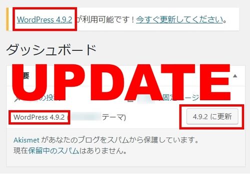 WordPress本体の更新をしたはずなのに「新しいバージョンがあります」という更新通知が出続ける場合の対処法。私の場合4.9.2に更新する場合にこの現象が出ました。